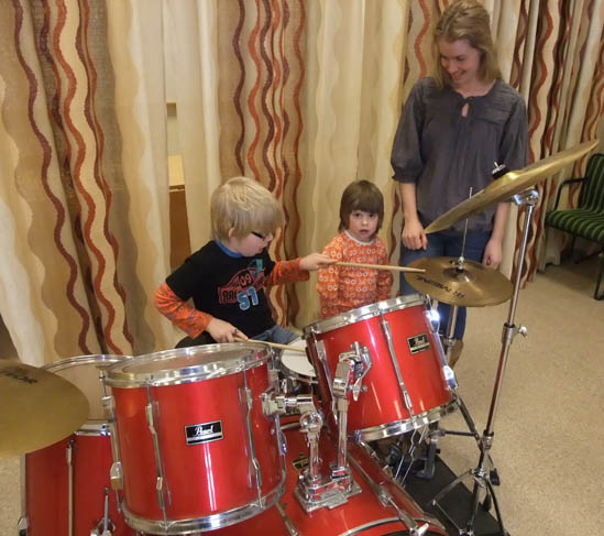 instruerade barnen som eldade på så gott de kunde med häftiga riff