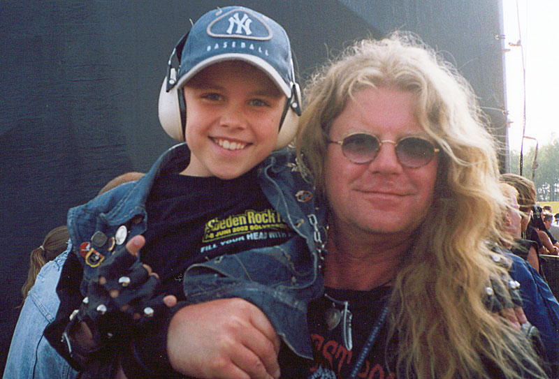 Det är kul med alla snälla hårdrockare vid Sweden Rock. När jag inte orkar lyfta upp Richard på mina axlar längre erbjuder sig alltid någon festivalbesökare att hjälpa till. Richard blev även intervjuad av Sweden Rock Magazine som kom ut med ett festivalnummer 22 juli. Jag träffade även på Hempo Hildén från Söderhamn som numer bor i Karlskrona. Naturligtvis träffade jag Hult och Henrik "Henke" Kvick. Det jag saknade mest var dock att inte få träffa min trummentor Ondahl, då det var så otroligt mycket folk i år. Men...vi ses säkert vid nästa års festival!!!