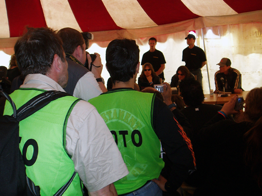 hade presskonferens innan sin konsert som samlade mycket publik vid Rock Stage.