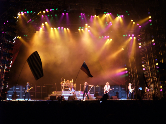 Kvällens begivenhet var självklart metallhjältarna Judas Priest med Metal God himself, Rob Halford. Rob står upphöjd på scen med en silverkappa med kåpa, nedböjd med silverstav och vrålar ut med knivskarp stämma som skär i märg och ben. Rösten är sig lik och när Rob tittar på publiken tystnar de som djävulen själv var närvarande. Öppningsnumret Nostradamus, från nya plattan, mullrade tungt, mäktigt och oövervinneligt i försommarnatten!