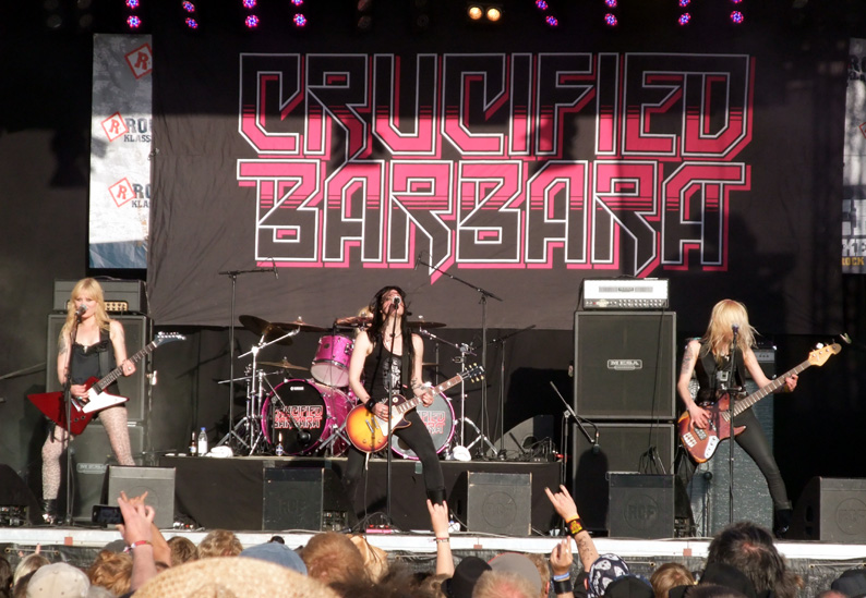 Tjejerna i Crucified Barbara är rutinerade och har ett fantastiskt tungt sväng i låtarna! Lite lustigt egentligen att många av killbanden är tatuerade, har skägg och slitna kläder och ett band som Crucified Barbara består av snygga ,välklädda tjejer som dessutom är skickliga musiker.