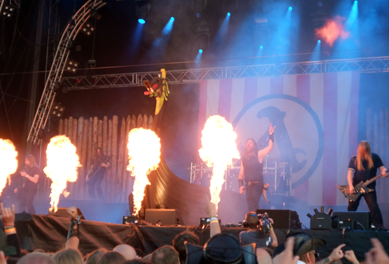 Amon Amarth med sin vikingabåt, krigare och eld på scen