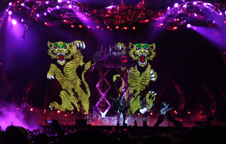 Kiss med grym scenshow, metallspindel, eld och granater även om inte Paul