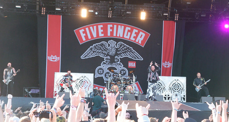 Five Finger Death Punch levererar en stenhård musik med snygga variationer. Även