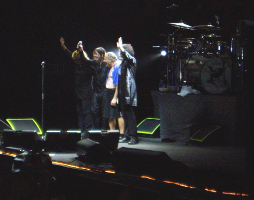 Geezer Butler, Ozzy Osbourne, Bill Ward och Tony Iommy tackar den entusiastiska publiken.
