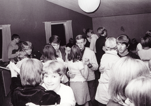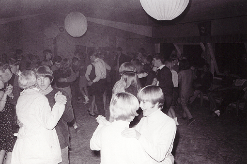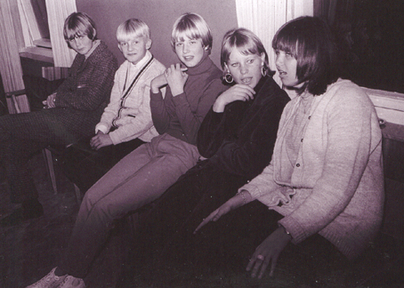 Här ser ni några bekanta ansikten som Kristina Karlsson, Christer Ödman, Olle Sköldmark, Håkan Frid och Bosse Henriksson. Längst upp till vänster skymtar Hitchhikers gitarrist och sångare Sven-Olov "Trintan" Lind.