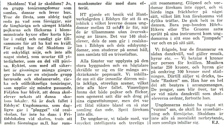 Här syns trummisen Thomas Käll också! Tack "Pransen" för att jag fick låna din fars negativ! "Prans" Erik Johansson med signaturen E.J. var journalist på HT under 1960-talet.