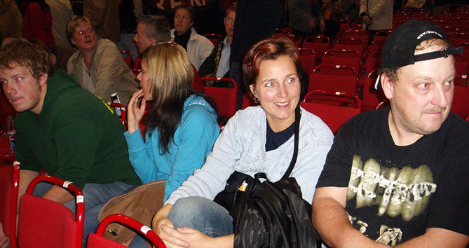 vid återföreningen 2003 på Woxstock. John "Klicken" Östling, Ulf "Nutte" Nöjd, Ulf "Skalman" Olsson, andra från Södrantiden och övrig publik njöt av samvaro, sol