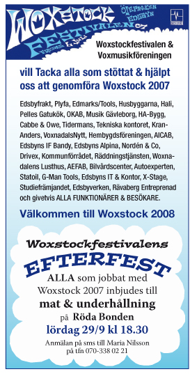 Show" på Woxstock den 5 juli i Öjeparken. Be there! Ett stort tack till